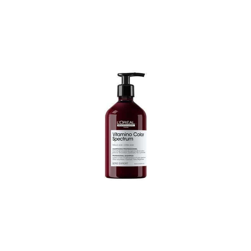 Το σαμπουάν Vitamino Color Spectrum της LOréal Professionnel αναπτύχθηκε ειδικά για βαμμένα μαλλιά. Εμπλουτισμένο με φερουλικό και κιτρικό οξύ, βοηθά στο κλείδωμα των χρωστικών στα μαλλιά και έτσι διατηρεί τη λάμψη και στις 5 διαστάσεις του χρώματος.