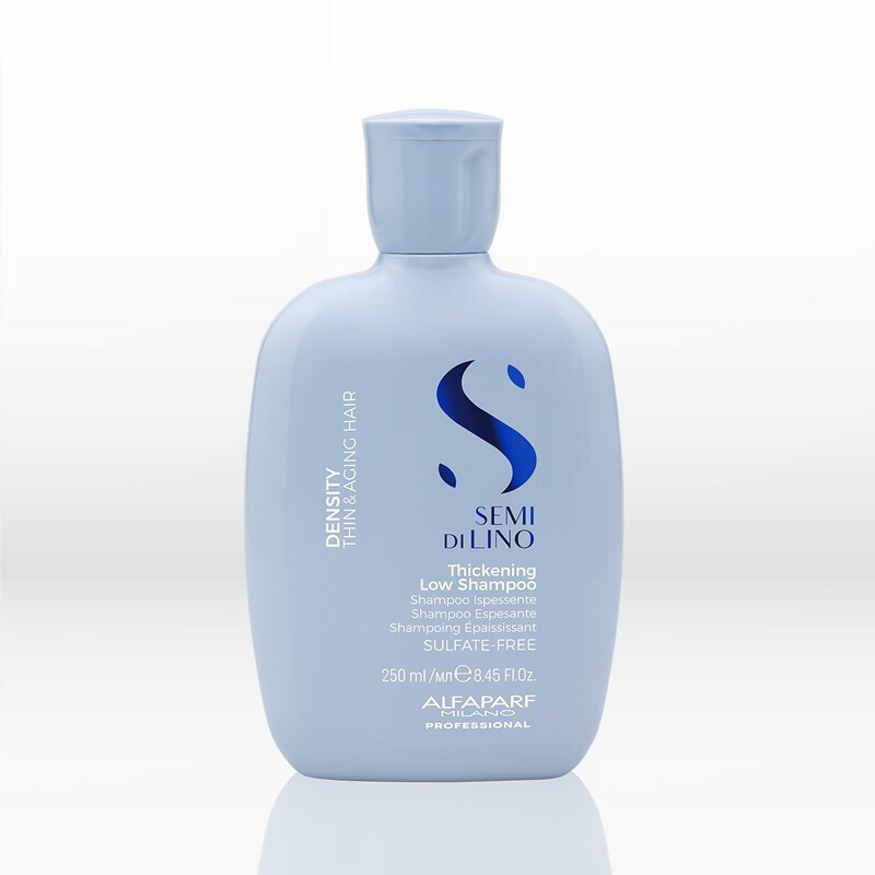 Επανορθωτικό σαμπουάν μαλλιών Low Semi di Lino Alfaparf Milano. Μέρα με τη μέρα τα μαλλιά σας γίνονται δυνατότερα και ελαστικότερα από τη ρίζα. Ενισχυμένο με Urban Defence Pro δημιουργεί μία ασπίδα κατά της ρύπανσης που προκαλείται στα αστικά κέντρα. Ακόμα προσφέρει 24ωρη λάμψη από τις ρίζες ως τις άκρες, αντιοξειδωτικά για να παρατείνει την ομορφιά του χρώματός σας αλλά και σύμπλεγμα Bamboo Marrow + Cortex Repair με υλικά τα οποία αναπλάθουν και επιδιορθώνουν τα ταλαιπωρημένα και φθαρμένα μαλλιά.