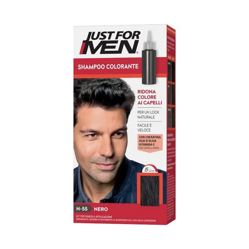 Γρήγορη και εύκολη φόρμουλα Shampoo-In Color για φυσική εμφάνιση χωρίς γκρίζα. Το Just For Men Shampoo-In Colour καλύπτει τα γκρίζα μαλλιά σας, στοχεύει μόνο σε αυτά και διατηρεί τις λεπτές παραλλαγές του φυσικού χρώματος των μαλλιών σας. Αυτό το εύκολο στην εφαρμογή χρώμα μαλλιών χρειάζεται μόνο πέντε λεπτά για να χρωματίσει όλα τα γκρίζα μαλλιά και διαρκεί έως ότου το γκρίζο μεγαλώσει ξανά. Το Just For Men Shampoo-In Color περιέχει πρωτεΐνες, βιταμίνη Ε, αλόη και χαμομήλι που θρέφει τα μαλλιά σας ενώ χρωματίζονται. Η φόρμουλα χωρίς αμμωνία δεν προκαλεί βλάβη στα μαλλιά ενώ παράλλληλα τα περιποιείται και τα αφήνει πιο λεία και ευκολότερα στη διαχείριση. Το Just for Men Shampoo-In Color στοχεύει τα γκρίζα μαλλιά για μια φυσική εμφάνιση σε αντίθεση με άλλες βαφές. Πάντα φυσικά αποτελέσματα. Όταν έχετε αμφιβολίες ή δεν είστε σίγουροι για το ποια να επιλέξετε, πάντοτε να επιλέγετε αυτή με την πιο ανοιχτή απόχρωση. Περιλαμβάνει κερατίνη, ελαιόλαδο και βιταμίνη Ε αλλά χωρίς αμμωνία για ισχυρότερα, πιο υγιή μαλλιά. Διαρκεί έως και 8 εβδομάδες έως ότου το γκρι μεγαλώσει ξανά. Γρήγορη & Εύκολη Εφαρμογή Ρίξτε έγχρωμη βάση στη φιάλη του απλικατέρ. Ανακινήστε και εφαρμόστε. Λειτουργεί σε 5 λεπτά. Ακολουθήστε όλες τις οδηγίες του φυλλαδίου. Πραγματοποιήστε μια δοκιμή αλλεργίας στο δέρμα 48 ώρες πριν από τη χρήση και χρησιμοποιείτε πάντα τα γάντια που παρέχονται.