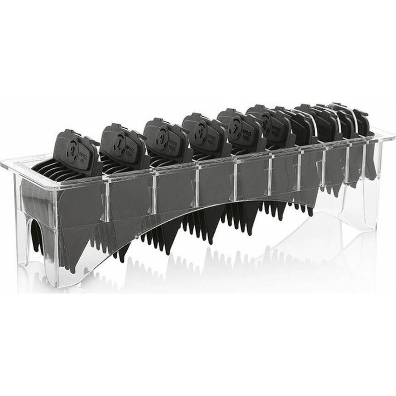 Σετ 8 πλαστικές σχάρες για μηχανές κουρέματος, συμβατές με μηχανές Wahl. Μεγέθη: 3mm, 6mm, 10mm, 13mm, 16mm, 19mm, 22mm, 25mm.