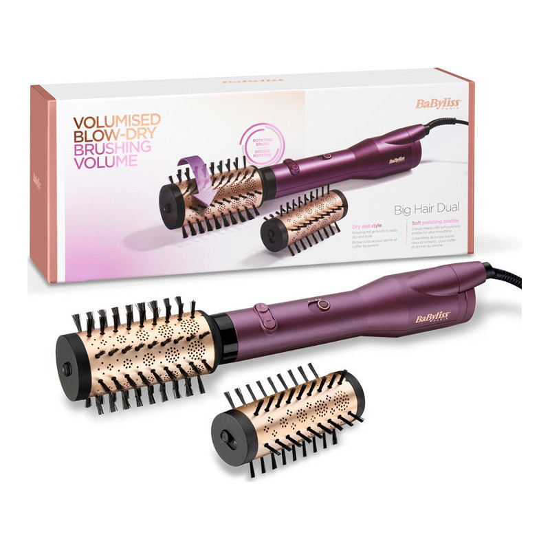 Η περιστρεφόμενη ηλεκτρική βούρτσα Big Hair Dual στεγνώνει και στιλιζάρει τα μαλλιά σας αμέσως. Είναι ένα πολύ-εργαλείο χτενίσματος που εξασφαλίζει τέλεια εμφάνιση στα μαλλιά σας. Η καθημερινή περιποίηση γίνεται διασκέδαση. Mπορείτε να δημιουργήσετε οποιοδήποτε στυλ μέσα σε μόλις λίγα λεπτά. Είναι ιδανική για χαλαρές μπούκλες και δίνει όγκο στο χτένισμα σας, καθώς αφήνει τα μαλλιά απαλά και λαμπερά. Βουρτσίζει ακόμα και τα μακριά μαλλιά χωρίς κανένα πρόβλημα και εξουδετερώνει το στατικό ηλεκτρισμό.