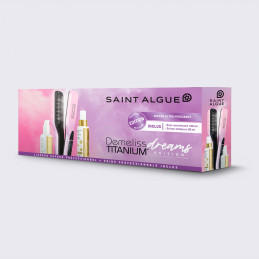 Πρέσα ατμού της Saint Algue με πλάκες από επικάλυψη τιτανίου και προαιρετική λειτουργία ατμού. Διαθέτει πολύ μεγάλο δοχείο νερού (40ml) το οποίο επιτρέπει συνεχή διάχυση ατμού για πάνω από 25 λεπτά, διαθέτει επίσης ισχυρούς διαχυτές ατμού (5g /min) για ένα ομαλό και εξαιρετικά μεταξένιο αποτέλεσμα.