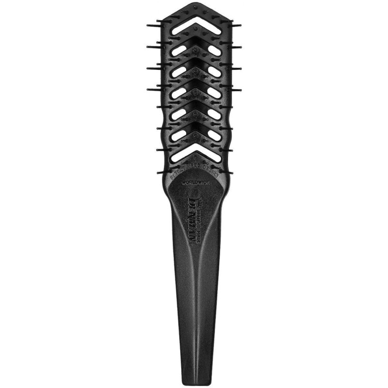 Βούρτσα μαλλιών από την εταιρία Denman. Ξεμπερδεύει εύκολα τα μαλλιά αφήνοντάς τα απαλά χωρίς να φθείρει την τρίχα. Είναι ειδικά σχεδιασμένη έτσι ώστε να κατανέμει ομοιόμορφα τη θερμοκρασία σε όλη την επιφάνεια της βούρτσας μειώνοντας τη φθορά που προκαλείται στην τρίχα από τη θερμότητα και επιταχύνοντας το στέγνωμα.