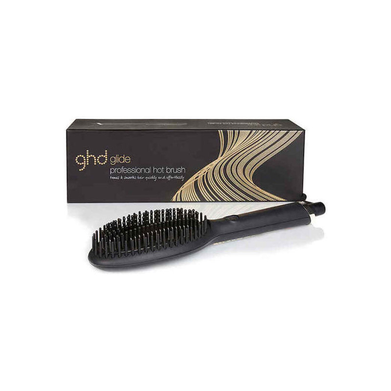 Ηλεκτρική βούρτσα μαλλιών GHD Glide που χτενίζει και ισιώνει γρήγορα και εύκολα τα μαλλιά, αποτρέποντας το φριζάρισμα.