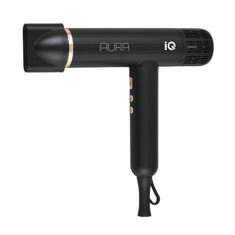 Πιστολάκι μαλλιών της IQ, που διαθέτει υψηλή ισχύ με δυνατή ροή αέρα για γρήγορο στέγνωμα και φορμάρισμα των μαλλιών.