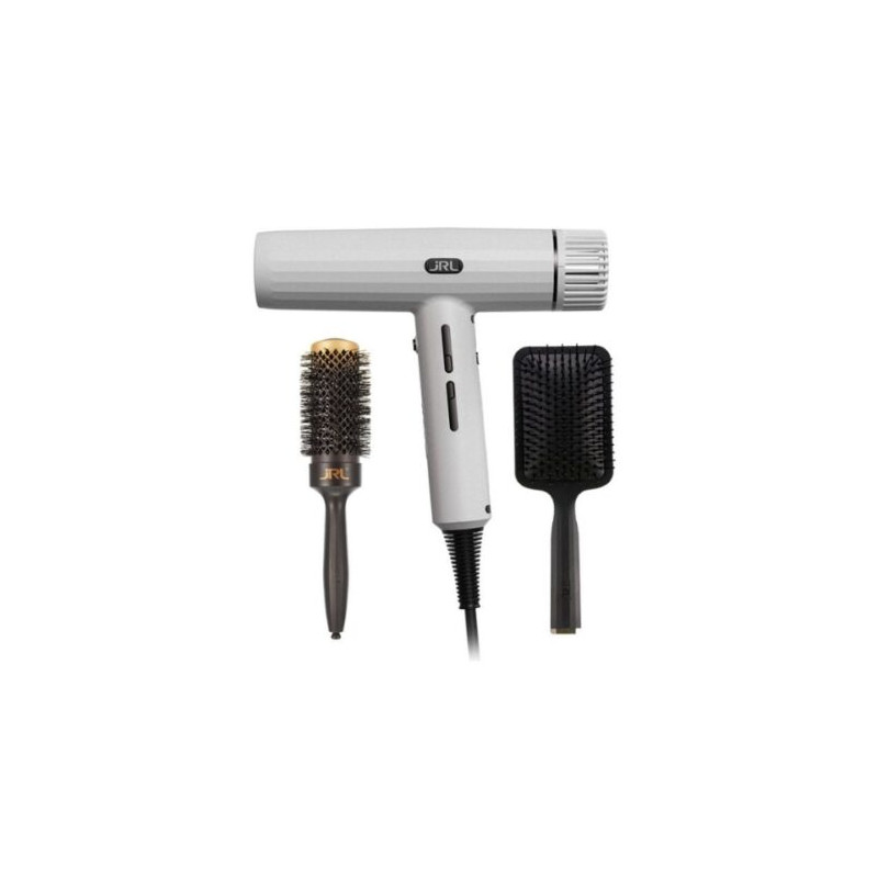 Επαγγελματικό πιστολάκι μαλλιών της jRL, που διαθέτει υψηλή ισχύ με δυνατή ροή αέρα για γρήγορο στέγνωμα και φορμάρισμα των μαλλιών.