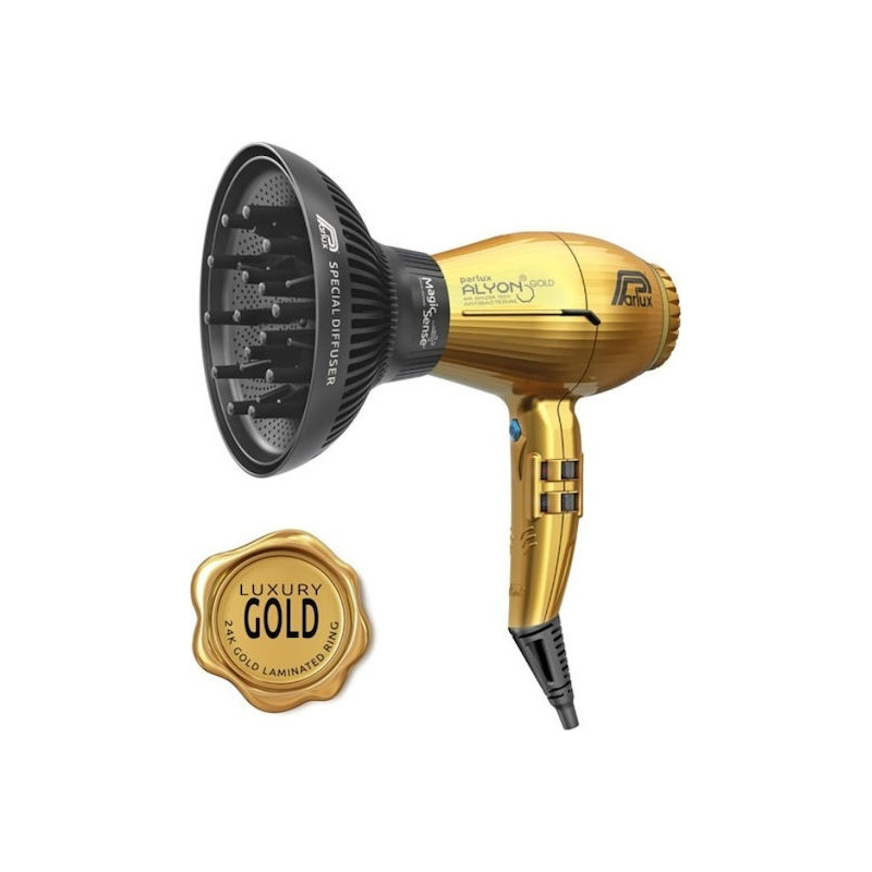 Επαγγελματικό πιστολάκι Parlux Alyon 2250 Watt, σε χρύσο χρώμα, με φυσούνα Parlux Magic Sense.