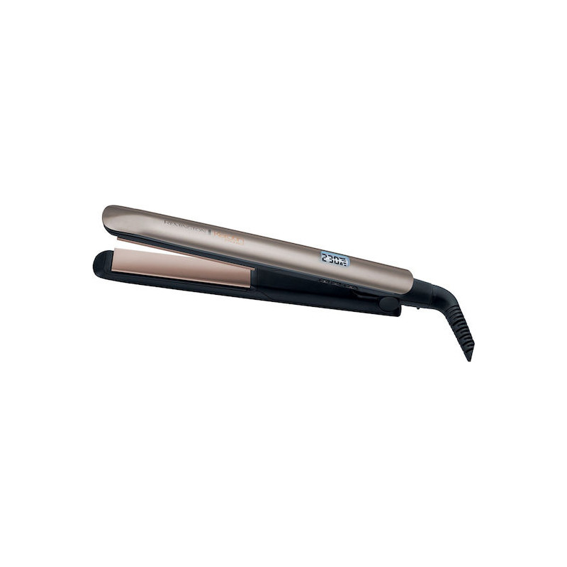 Ισιωτικό μαλλιών που συνδυάζει σύνθεση κερατίνης στις κεραμικές πλάκες και αποκλειστικό αισθητήρα θερμότητας για επιπλέον προστασία η οποία ανιχνεύει τα επίπεδα υγρασίας και αντίστοιχα βελτιστοποιεί τη θερμοκρασία.