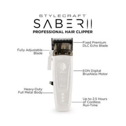 1. ΚΟΥΡΕΥΤΙΚΗ ΜΗΧΑΝΗ SABER 2.0 - ΕΠΑΓΓΕΛΜΑΤΙΚΗ ΑΣΥΡΜΑΤΗ ΚΟΥΡΕΤΙΚΗ ΜΗΧΑΝΗ ΜΕ ΨΗΦΙΑΚΟ ΚΙΝΗΤΗΡΑ ΥΨΗΛΗΣ ΡΟΠΗΣ ΣΕ ΛΕΥΚΟ ΧΡΩΜΑ 2.ΕΠΑΓΓΕΛΜΑΤΙΚΟ TRIMMER STYLECRAFT SABER WHITE