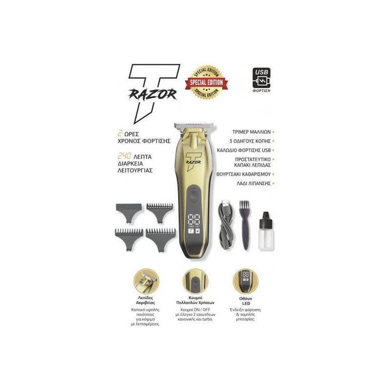 Το Trimmer T Razor Μαύρο είναι ένα επαγγελματικό τρίμερ μαλλιών και γενειάδας, ιδανικό για ακριβές κόψιμο και styling. Με λεπίδες υψηλής ακρίβειας και 3 οδηγούς κοπής, προσφέρει εξαιρετικό αποτέλεσμα σε κάθε χρήση. Διαθέτει USB φόρτιση για εύκολη μεταφορά και διάρκεια λειτουργίας έως 240 λεπτά, κάνοντάς το ιδανικό τόσο για επαγγελματίες όσο και για...
